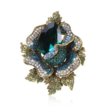 Crystal Flower Brooch Rhinestone Jewelry Women Wedding Hijab Pins Large Brooches Zinc Alloy Popular Lapel Pin Fashion for Women